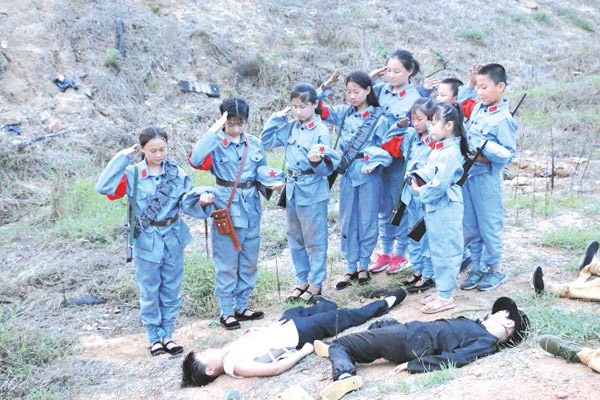 拍攝階段,沂蒙紅色影視基地拓展師,還帶領孩子們拓展、參觀紅色基地,讓孩子們全方位體驗革命,爭取在演出的時候有更好的效果,并在拓展活動中,和同學們探討優秀團、共同承擔等問題。
