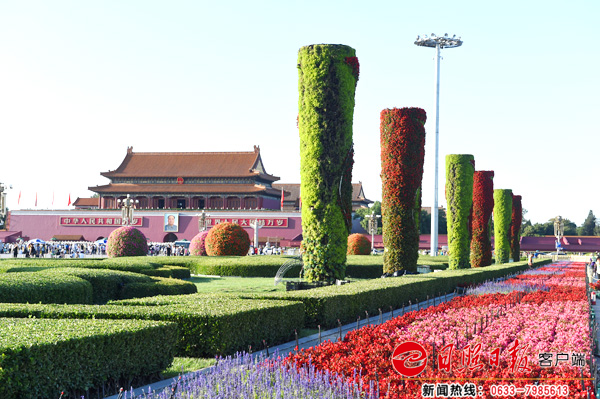 9月17日,天安門廣場兩側綠地的花柱、花球及花帶已經基本完工。 日前,北京天安門廣場國慶花壇開始布置,目前廣場兩側綠地的花柱、花球及花帶已經基本完工。據北京市園林綠化局介紹,今年國慶節,“祝福祖國”巨型花籃將再現天安門廣場,在天安門廣場兩側綠地,將布置12根花柱、18個花球及5000平方米花帶,晚上還將運用燈光變化,豐富夜景照明效果。 (新華社記者 羅曉光 攝)