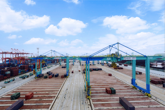 當前,山東港口日照港正大力推進集裝箱碼頭改造項目,本次投用的新型軌道吊是該項目的重要組成部分。新設備新堆場投產后,預計將增加7000多標箱堆存能力,顯著提升堆場自動化作業占比。同時,堆場新設備的投用將大幅釋放前期投入運營的50臺智能導引運輸車(IGV)的作業能力,進一步提高碼頭自動化規模化作業能力,降低人員勞動強度和碼頭人力成本,不斷提升港口的“含新含智含綠量”。