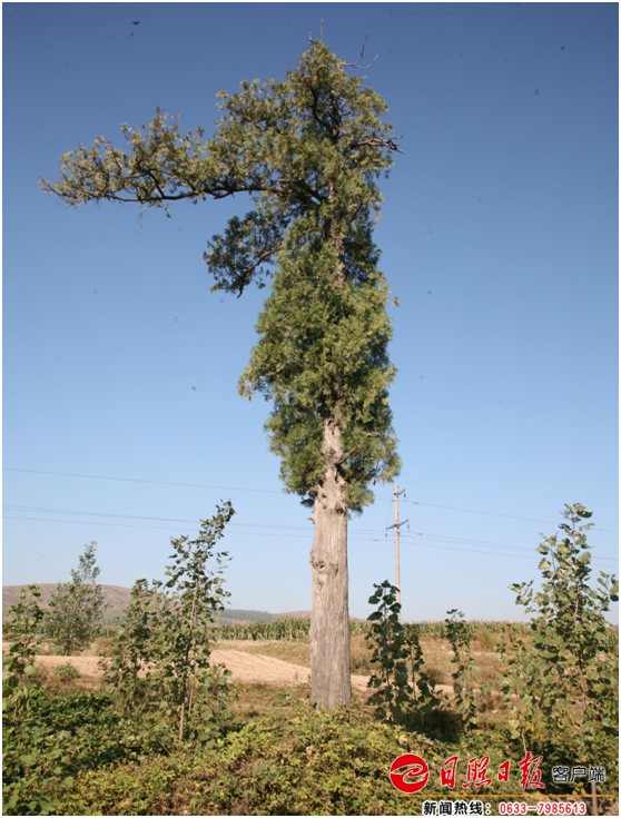 日照新聞網(wǎng)訊 嵐山區(qū)中樓鎮(zhèn)婁家湖村側(cè)柏,樹齡400年,樹高17米,胸圍51厘米,冠幅5米,東西冠幅5米,南北冠幅5米。