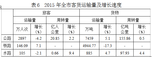 交通運輸業穩定增長。全年完成地方公路客運量2897萬人次,比上年下降4.2%;公路旅客周轉量20.85億人公里,增長2.2%。地方公路貨運量7459萬噸,增長5.1%;公路貨運周轉量155.86億噸公里,增長0.5%。地方海上貨運量885萬噸,增長4.7%;海上貨運周轉量97.93億噸公里,增長4.4%。鐵路發送旅客量146.09萬人次,增長7.1%;鐵路貨運量4944.77萬噸,下降17.3%。