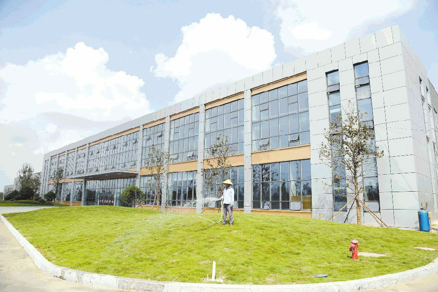 9月12日,日照經濟技術開發區軍民融合產業園內芳草茵茵、花樹掩映,一派欣欣向榮的景象。 近日,日照開發區城投集團把握雨季有利時機,積極對軍民融合產業園實施凈化、綠化、亮化、美化提升工程。截至目前,該園區已累計栽植廣玉蘭、銀杏等各類高大喬木近百棵,叢生樸樹、石楠、女貞、黃楊、百日紅、月季等花草灌木近8萬株,栽植草坪5100平方米。 圖為綠化工人正在給草地澆水