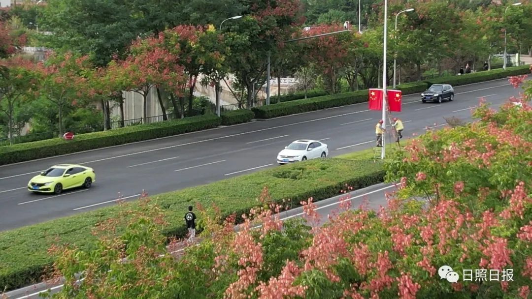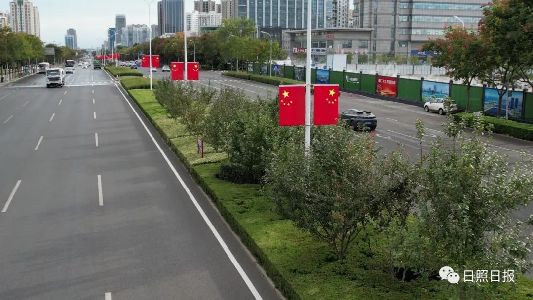 據了解,日照市城市管理局采取點、線、面相結合全面布展,共計安裝仿真立體雕塑及擺放國慶菊、一串紅、雞冠花等各類盆栽景觀花卉約4萬盆,設置“歡度國慶”“喜迎二十大”等慶祝標語,在部分道路節點處栽植桑貝斯鳳仙、鼠尾草、一串紅等花卉約6萬株。