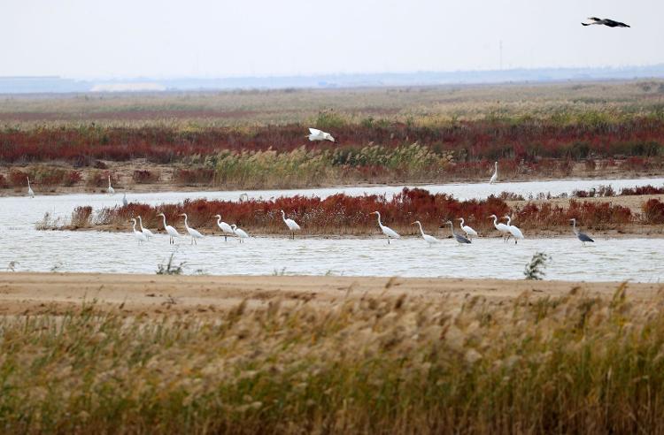 “黃河很美,將來會(huì)更美。”金秋十月,山東東營,黃河三角洲自然保護(hù)區(qū)內(nèi),堿蓬紅毯,水波生光,狄花搖曳,成群結(jié)隊(duì)遷徙而至的候鳥在濕地內(nèi)嬉水覓食、游弋飛翔,自在悠然。